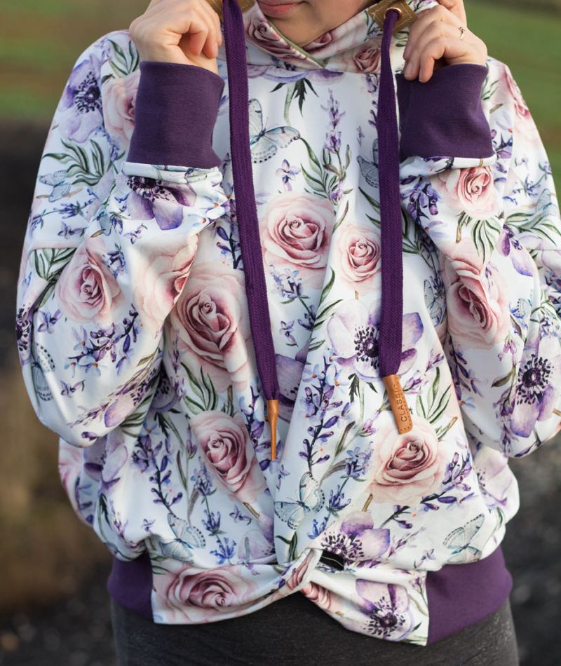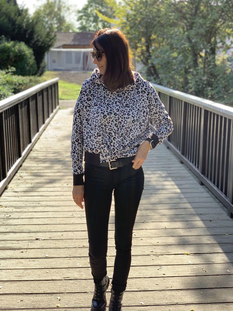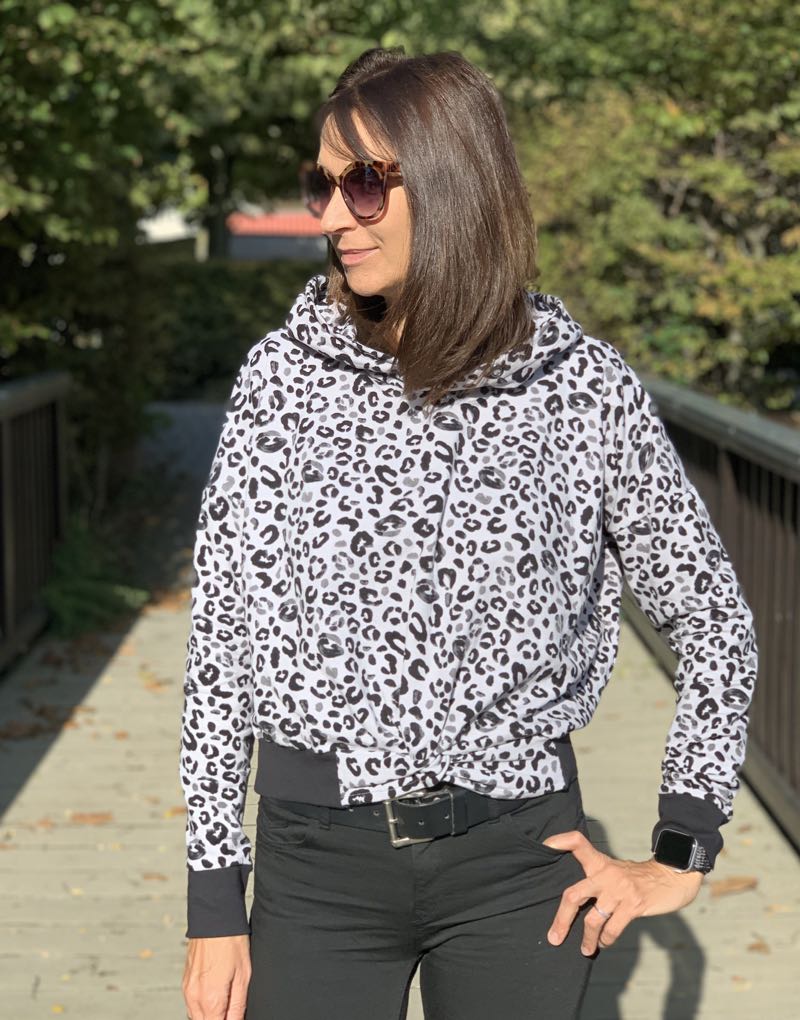 Dieser schöne kurze Frederike Oversize – Hoodie hat eine raffinierte Saumlösung mit Knotenoptik. Das Schnittmuster ist für blutige Nähanfängerinnen nicht zu empfehlen, ein wenig Näherfahrung solltest Du für dieses Shirt schon haben. Es ist ein besonderer Hingucker. Es gibt auch ein passendes Video dazu, in dem wir die Schritte wie man diesen “Knoten näht” ausführlich erklären. Wer keine Kapuze / Hoodie nähen möchte kann den Halsausschnitt mit einem Schrägstreifen verarbeiten, somit bekommt das Teil gleich einen ganz anderen Look!