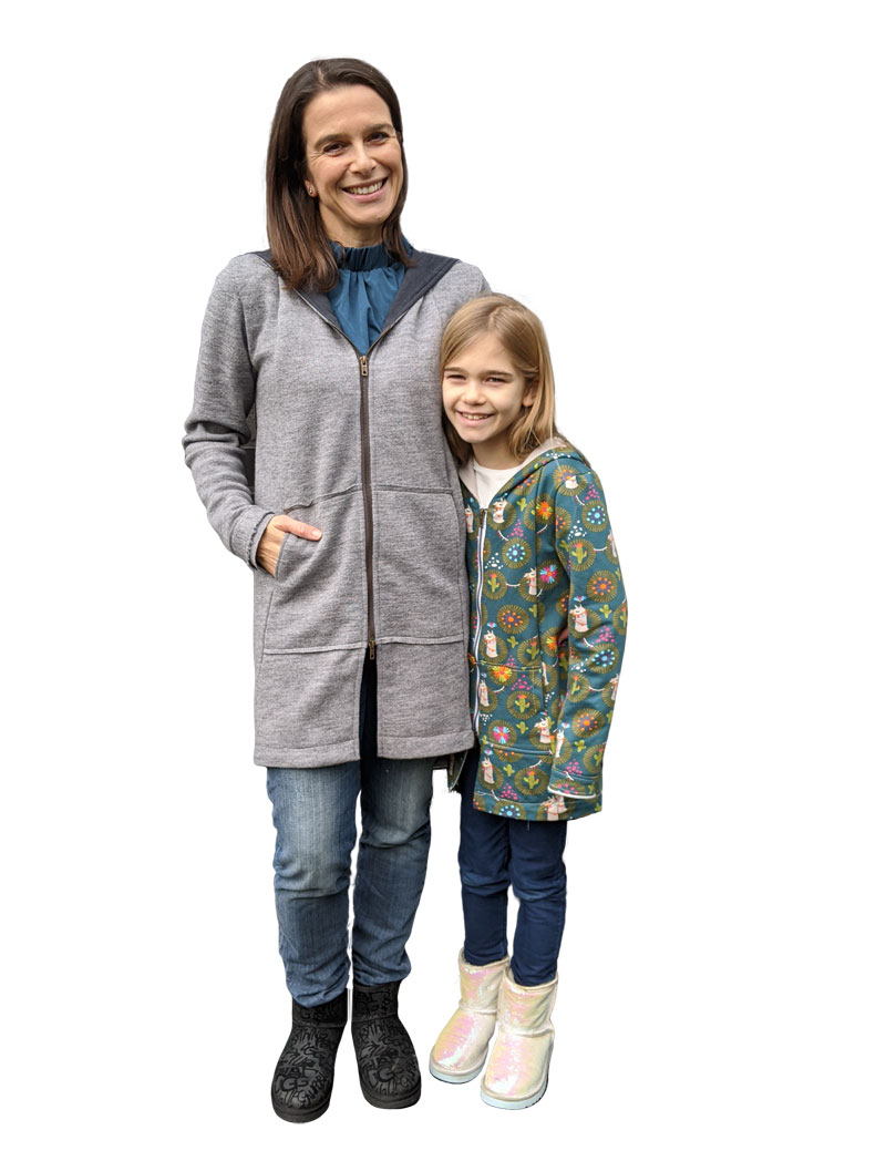 Diese hübsche Sweatjacke mit Kapuze und Reißverschluß kann grundsätzlich aus allen dehnbaren Stoffen genäht werden und ist für Fortgeschrittene Näherinnen zu empfehlen. Es gibt wie immer viele Möglichkeiten, gerade auch als Mutter-Tochter-Projekt!