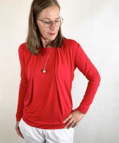 Ein hochwertiger Single-Jersey aus Bambus/Elasthan in Grau. Der Jersey eignet sich ideal für Kleider, Shirts, Hosen, Beanie Mützen, Loopschals, Pumphosen und Jogginghosen. Der Jersey ist vom Fall und Griff her mit einem Viskosejersey zu vergleichen. Er trägt sich angenehm auf der Haut. Abbildung Schnittmuster Wasserfallshirt Kat, Haremshose Naomi, Shirt Senta in anderer Farbstellung. Abbildung Shirt Sue in Weiß.