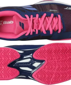 Der Jet Mach I von Babolat garantiert hohe Atmungsaktivität, hohe Sprungkraft und eine leichtgewichtige Zusammensetzung, deren innovative Technologien den idealen Wettkampfschuh für den Sandplatz ausmachen. – Sandplatz / Clay – gepolsterter Schaft für hohen Komfort – individuelle Schnürung – gewebte Polyamidfasern mit Kevlar®-Einlagen – Obermaterial ist leicht, atmungsaktiv und strapazierfähig – Ortholite®-Zwischensohle und Kompressor-System für optimale Dämpfung – Active-Flexion-System für effektive Sprungkraft – Michelin-Außensohle schafft hohe Traktion und Langlebigkeit – ideal für Wettkampfspielerinnen