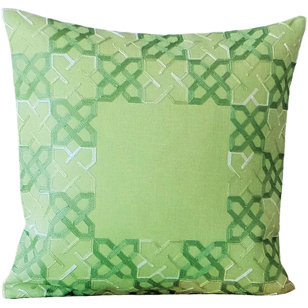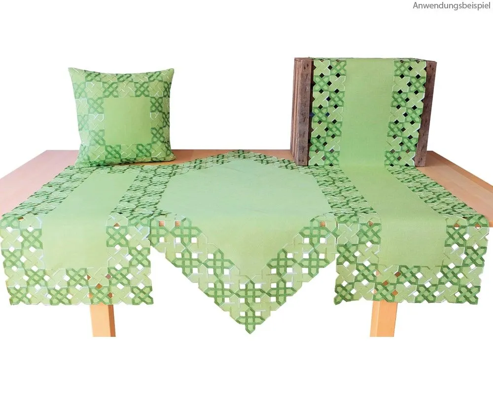 Kissenbezug Kissenhülle Kurbelstickerei grafisch grün silber 1 Stk 40×40 cm
