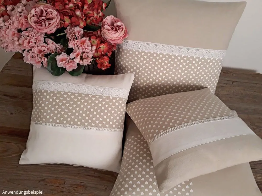 Kissenhülle Heimtextilien Landhaus Premium TRAUDL Herzen beige weiß & Dackel 30×30