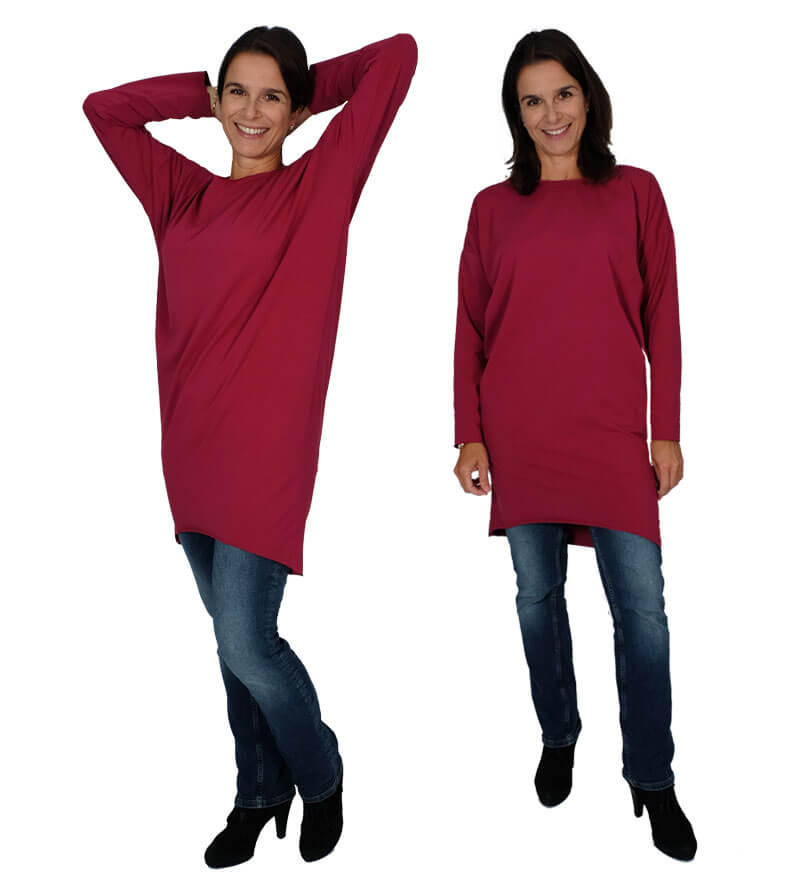 Dieses unkomplizierte Kleid kannst Du in verschiedenen Varianten nähen. Ob als Kleid oder als Shirt, mit Kapuze oder ohne, Du wirst es sicher nicht nur einmal nähen!