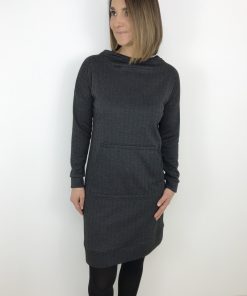 Dies ist ein unkompliziertes Hoodiekleid, welches durch verschiedene Stoffe immer wieder anders aussehen wird. Du kannst das Kleid mit Kapuze, Schalkragen oder mit einem U-Boot Ausschnitt verarbeiten, Deiner Kreativität sind also keine Grenzen gesetzt! Du kannst das Schnittmuster auch ohne Tasche und kürzer zuschneiden und als lässiges Shirt verarbeiten.