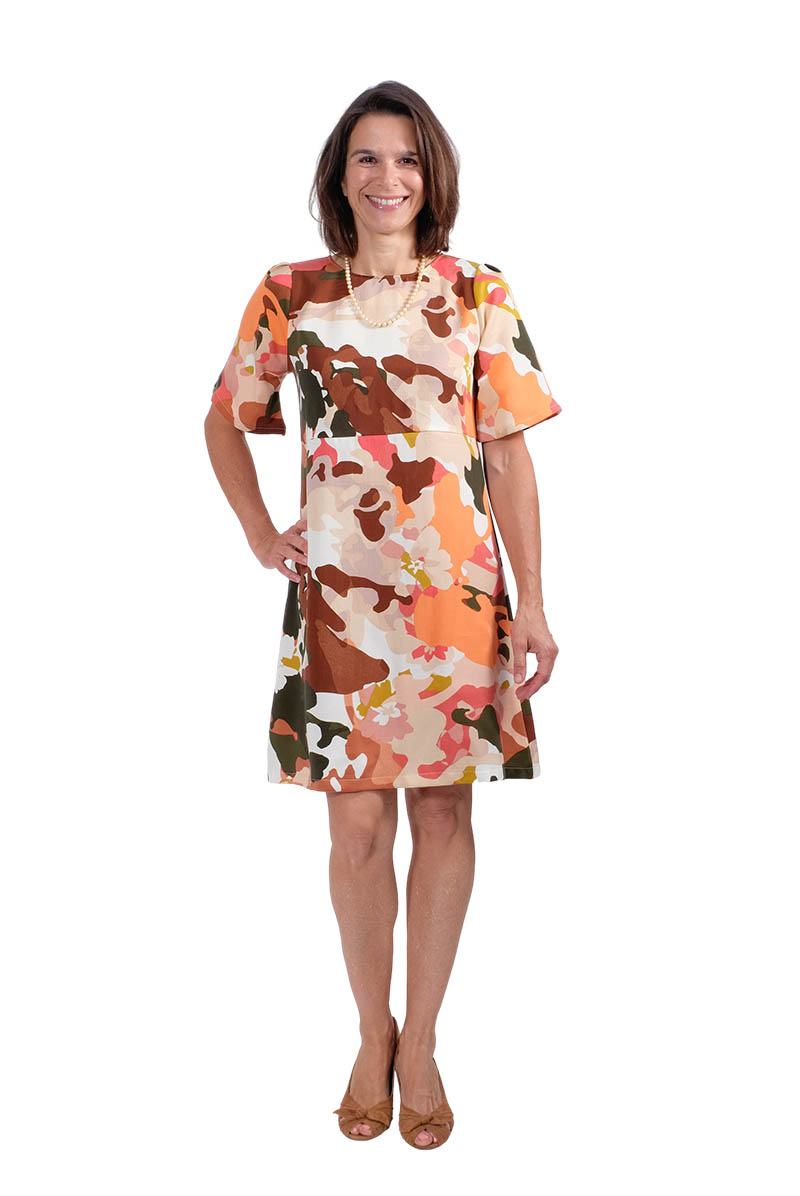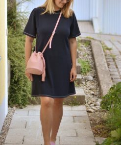 Ein einfaches Kleid mit vielen Optionen. Durch die schöne A-Linienform ist es auch für viele Figuren geeignet, da es an der Hüfte etwas weiter geschnitten ist und diese dann umschmeichelt….) Grundsätzlich kannst Du das Kleid aus allen Stoffen nähen. Sie sollten nur einen fließenden Fall haben, zu steife Stoffe eignen sich nicht. Für Anfänger empfehlen wir dehnbare Stoffe, da man das Kleid dann ohne Reißverschluss und Futter verarbeiten kann. Fortgeschrittene können stabile Stoffe verwenden, dann ist allerdings ein Reißverschluss notwendig. Ob mit oder ohne Futter ist vom Material abhänging. Im Ebook sind alle Varianten beschrieben. Die passenden VIdeos dazu gibt es auch von uns. Ihr könnt das Kleid auch mit langem Arm in langer Version nähen, im Ebook ist alles detailliert erklärt.