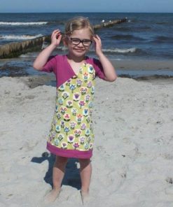 Dieses Kleid ist sehr schnell genäht und ein ideales Projekt wenn man schon das ein oder andere Jerseyteil genäht hat. Ihr könnt es mit Streifen, angesetztem Rock, gerade oder auch als Shirt nähen. Die Möglichkeiten sind vielfältig. Wir beschreiben im Ebook alle Möglichkeiten. Das Teil ist das ganze Jahr über tragbar!