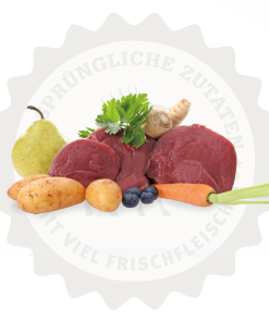 Das Lakefields Trockenfleisch-Menü Wild eignet sich hervorragend zur Fütterung von anspruchsvollen, ausgewachsenen Hunden kleiner Rassen. Dank der ausgeklügelten, proteinreichen Zusammensetzung aus Fleisch und Innereien heimischer Rehe und Hirsche (68 %), kombiniert mit basischer Kartoffel und ballaststoffreichem Obst und Gemüse, wird dieses vollwertige Premium-Trockenfutter auch von mäkeligen Tieren gerne angenommen. Dieses getreidefreie Alleinfutter wird nach sorgfältiger Durchmischung der regionalen Zutaten nährstoffschonend im traditionellen Steinofen gebacken.