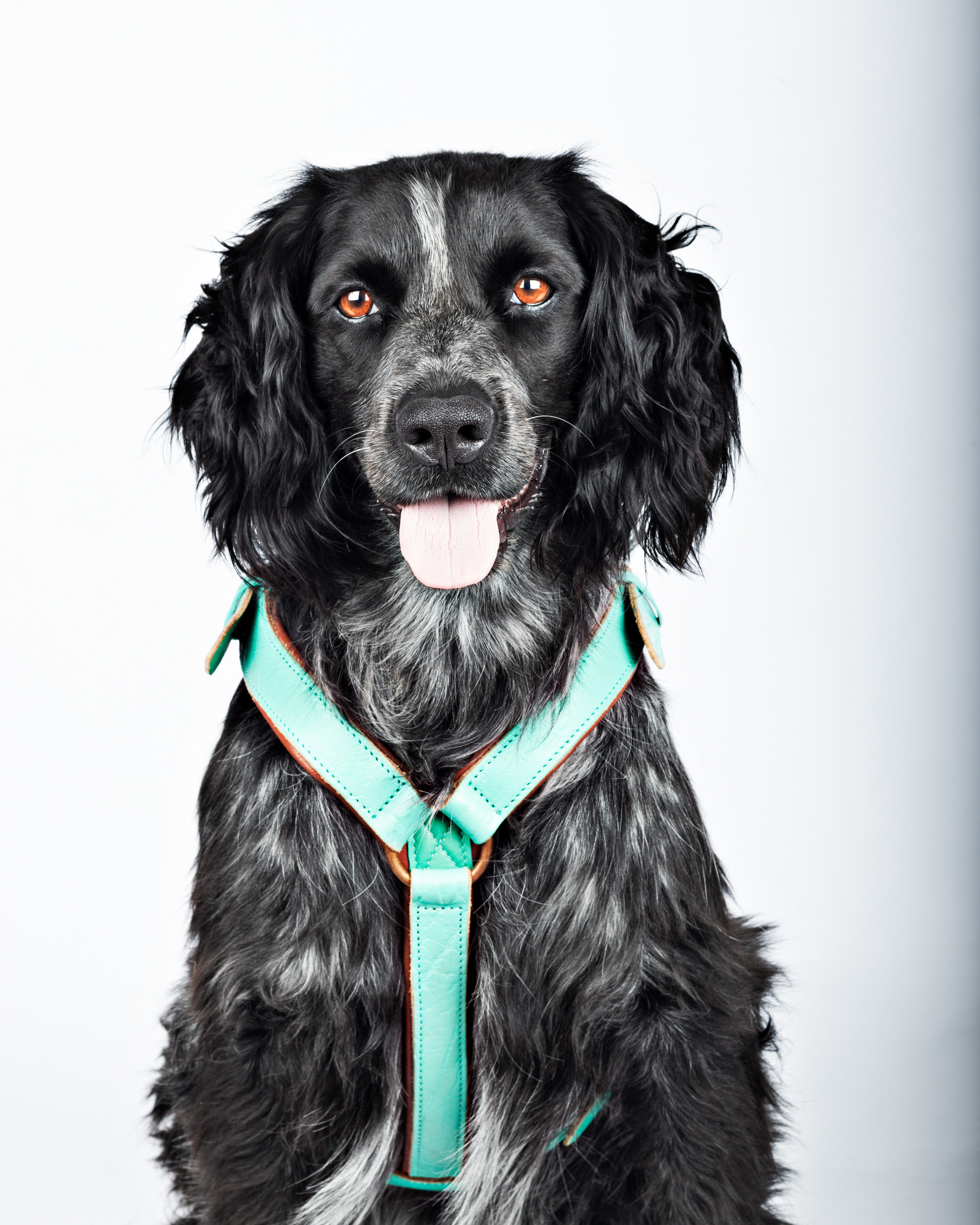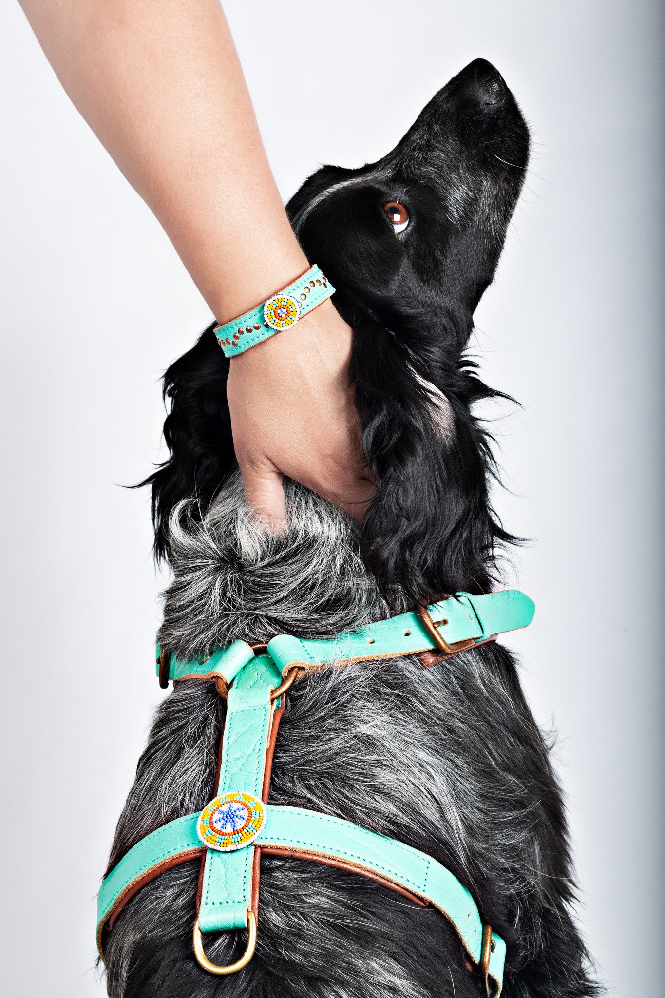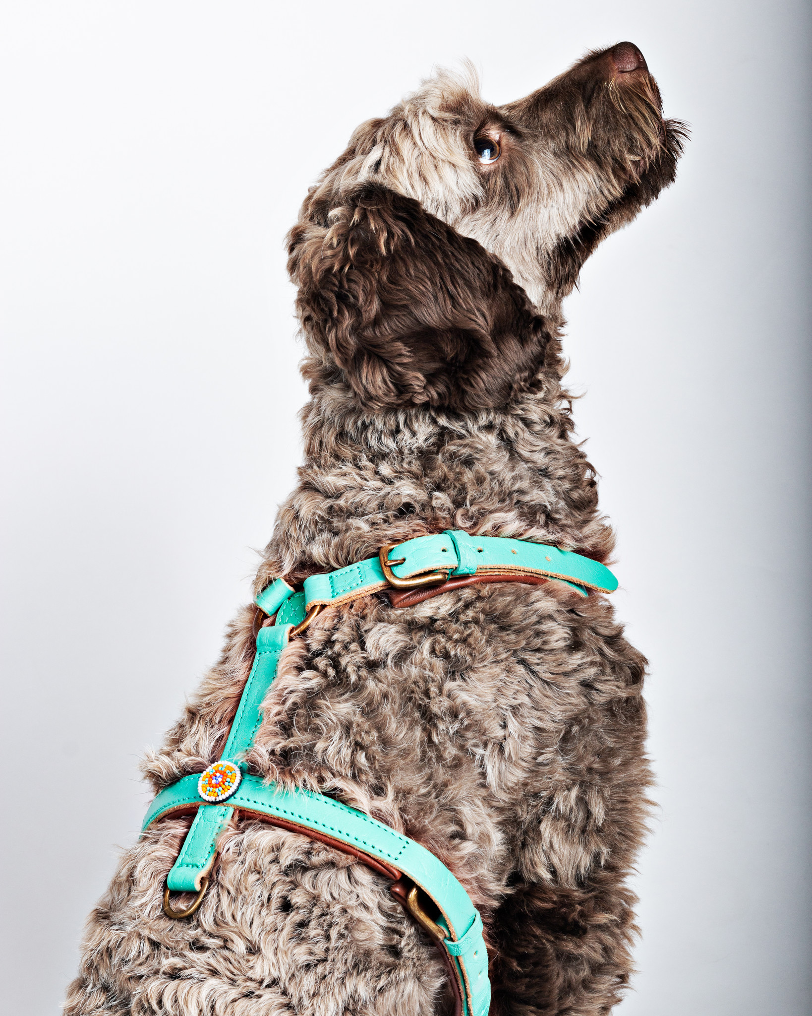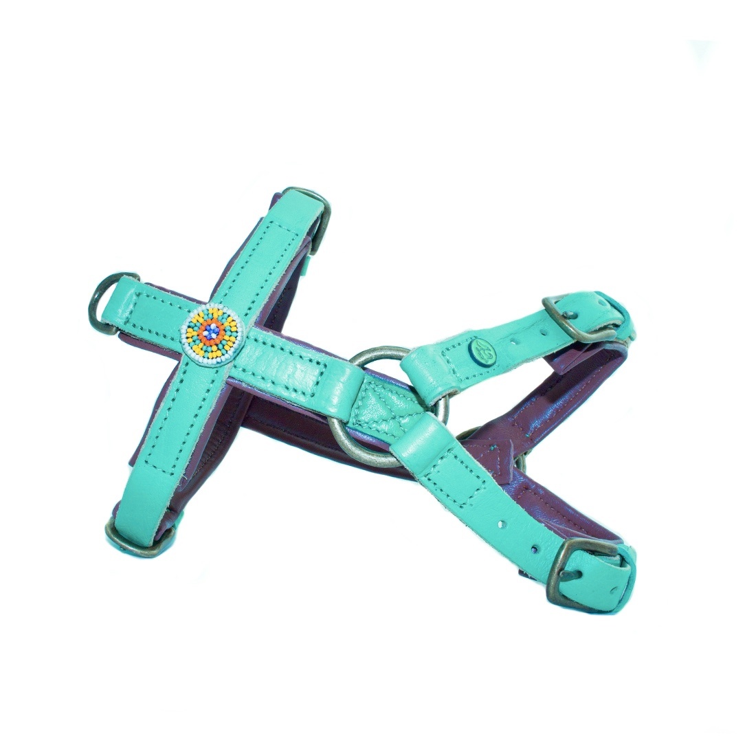 Türkisfarbenes Geschirr Avalon ist ein komplett verstellbares Geschirr und eignet sich also für jede Hunderasse. Avalon hat eine schöne wulstige Rosette um den Bohemian Look zu vervollständigen.