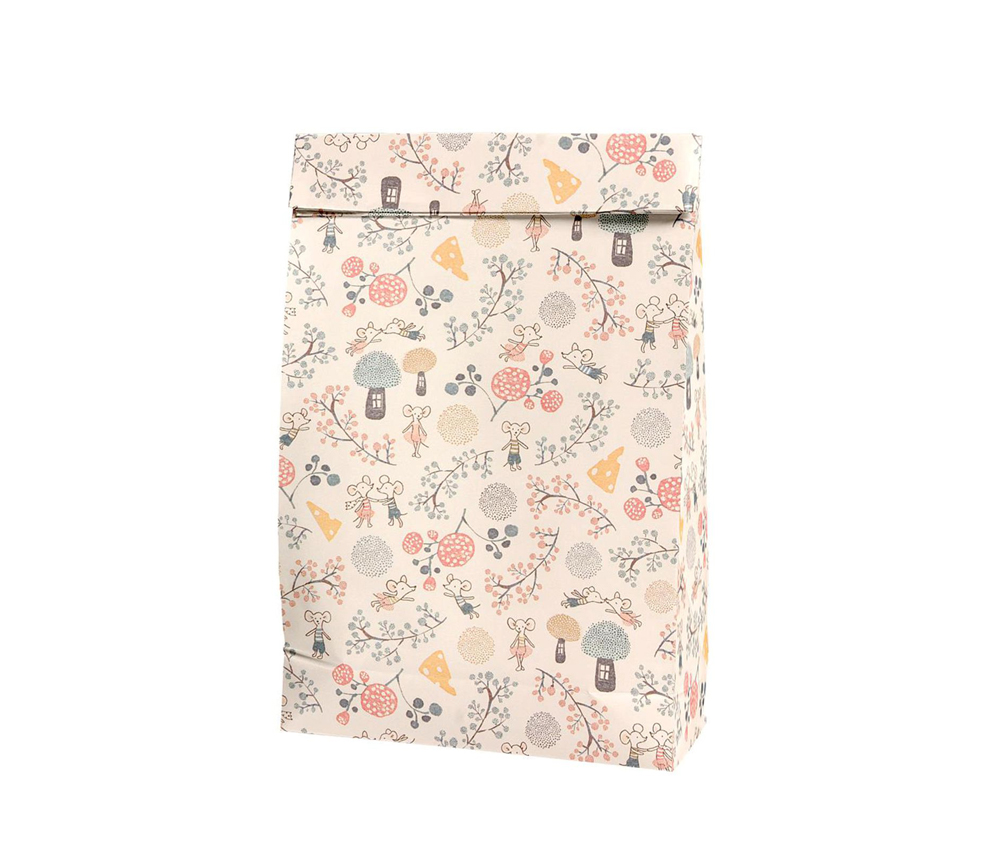 Hier kommen die tollen Geschenktüten aus Papier mit Boden für Geburstagsparties. Du kannst die mit Mäuschen bedruckten Tüten einzeln kaufen, genau so viele, wie Du benötigst. Das Material ist schön fest und stabil. In die 18×28,5cm großen Papiertüten passen allerhand schöne Überraschungen für Geburtstagsgäste hinein. Auch schön als schnelle Geschenkverpackung, Geschenk rein, zugeklebt, Schleife dran… fertig. Das niedliche Muster passt für Jungen und Mädchen gleichermaßen.