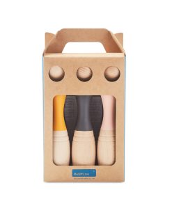 Wie alle Spiele von Me&Mine ist auch das Kegel Set etwas, was sowohl den Kleinen als auch den Großen Spaß macht und dazu einlädt, zusammen mit den Kindern zu spielen. Probiert aus, wie es mit Eurer Treffsicherheit so steht. Zum Set gehören sechs Kegel und drei Kugeln.