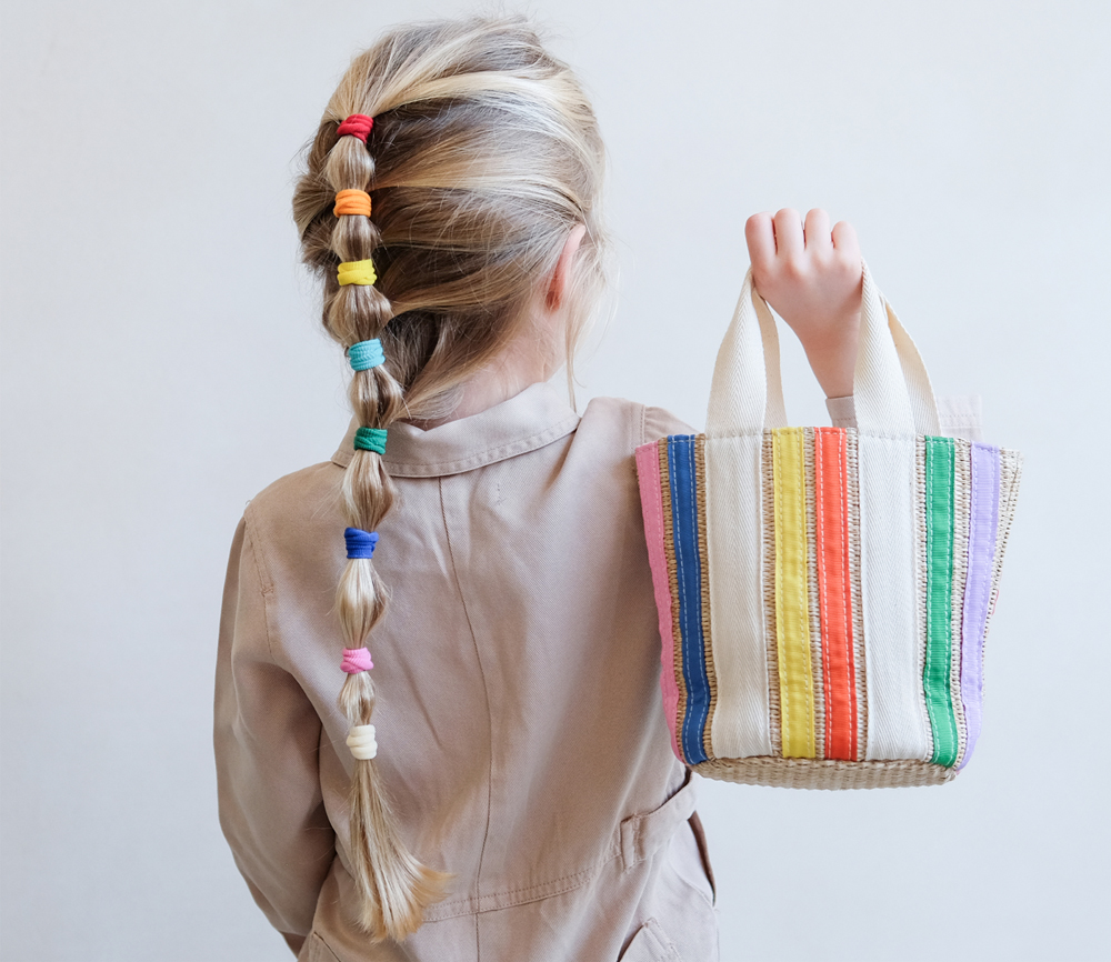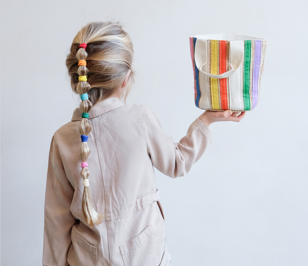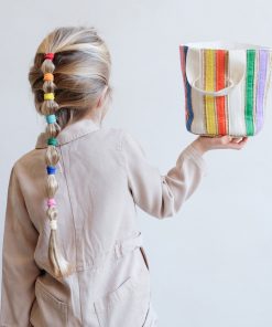 Die wunderbare Regenbogen-Band-Korbtasche bringt eine lustige, verspielte Atmosphäre, die perfekt für Strandtage, Picknicks oder einfach für das Verstecken ihrer Lieblingsspielzeuge ist! Mit seinem schönen leichten Design ist es perfekt für große Abenteuer!