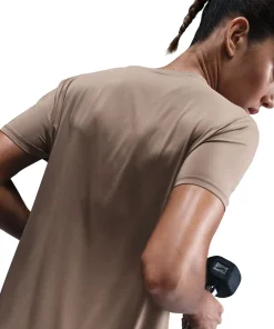 Nike One Classic Women's Dri-FIT Short-Sleeve Fitness Top Egal, ob du ein Workout absolvieren oder dich entspannen möchtest ? dieses Nike One Oberteil ist bereit für jeden Einsatz. Mit einem zeitlosen Style, auf den du dich verlassen kannst, und besonders leichtem, geschmeidigem Material mit schweißableitender Technologie fühlst du dich sowohl morgens beim Spazierengehen als auch abends beim Entspannen sicher, bequem und trocken. Die Nike Dri-FIT-Technologie leitet Schweiß von der Haut ab, wodurch er schneller verdunstet, und ermöglicht so trockenen Tragekomfort. Das Design sorgt für ein eng anliegendes Tragegefühl. More Details. Einsatz unter dem Arm. 89 % Polyester, 11 % Elastan. Maschinenwäsche. Importiert. 89% POLYESTER. 11% SPANDEX