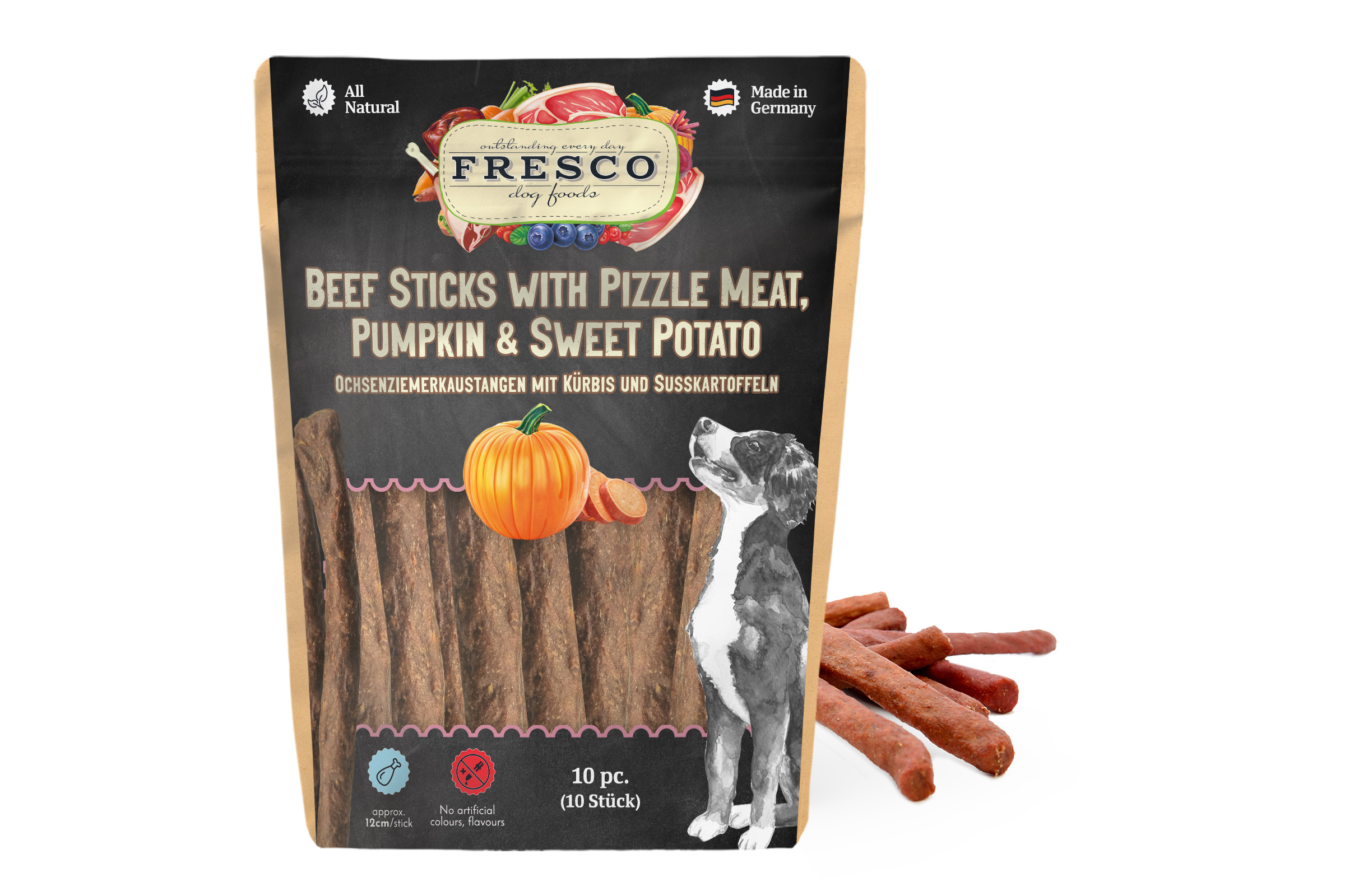 Ochsenziemerkaustangen, mit Kürbis und Süßkartoffeln, 12cm (10 Stangen)