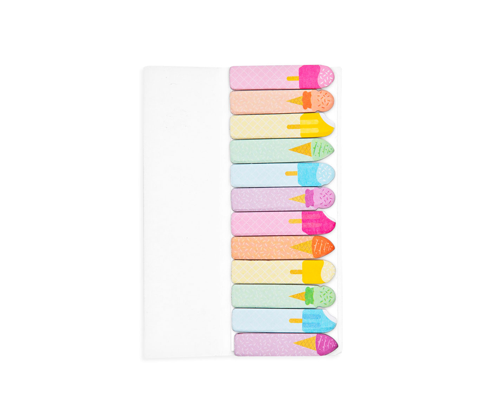 100 kleine Haftnotizen „Cool Treats“ von OOLY mit 12 verschiedenen Eiscreme-Motiven zum Markieren, Beschriften und Erinnern! Die selbstklebenden Notizzettelchen lassen sich an jeder glatten Oberfläche befestigen und einfach wieder ablösen.