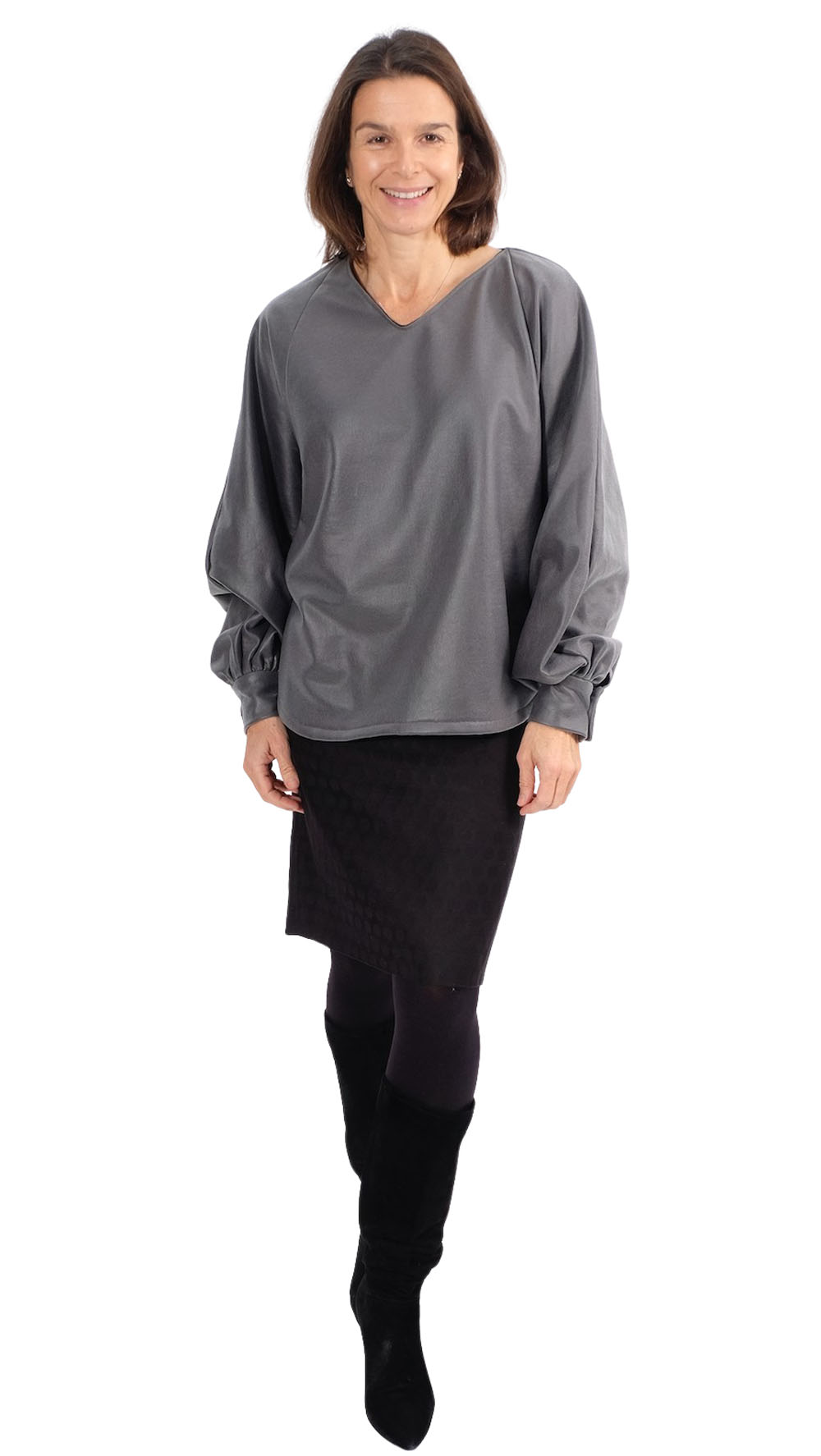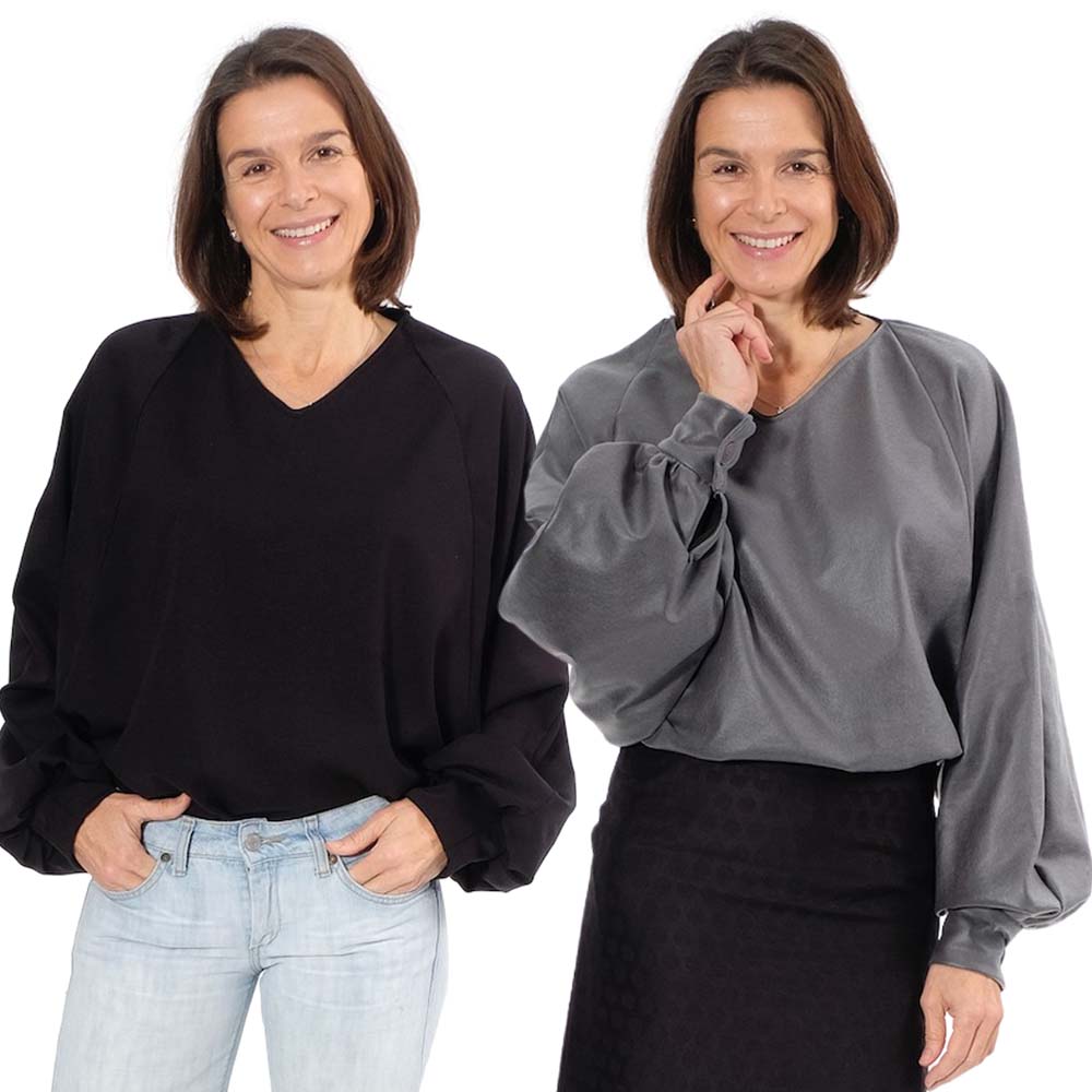 Stoffempfehlung für diesen Style: Leichte Sweatstoffe, Jersey oder auch Viskose-Stoffe. Dieses Shirt kann aus Sommer- und Winterstoffen genäht werden.