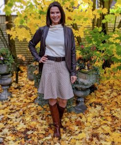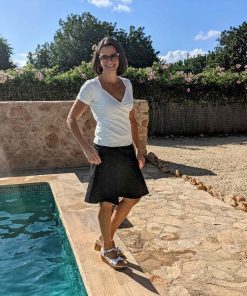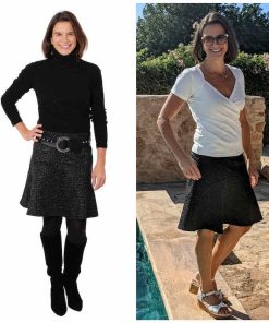 Du möchtest einen super einfachen Rock nähen? Dann liegst Du mit diesem Modell genau richtig. Nehme dafür aber einen dehnbaren Stoff, denn stabile Stoffe gehen nur mit einem Reißverschluss. Das wäre dann die Variante für Fortgeschrittene. Der Rock mit Belegverarbeitung zaubert eine hübsche Silhouette und ist für viele Figuren sehr gut geeignet. Oben ist der Rock gerade bzw. figurnah geschnitten, die unteren Teile sind glockig und ausgestellt. Du kannst den Rock mit oder ohne Teilungsnähte verarbeiten, im Ebook sind alle Schritte ganz genau beschrieben. Das Schöne an dem Rock ist, dass man ihn aus allen Stoffen nähen kann, somit ist er auch das ganze Jahr über tragbar. Ein Futter dazu ist auch mit beinhaltet.