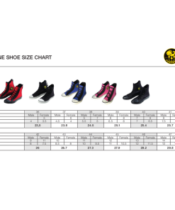 Größen (siehe auch One Shoe Size Chart – Bild):