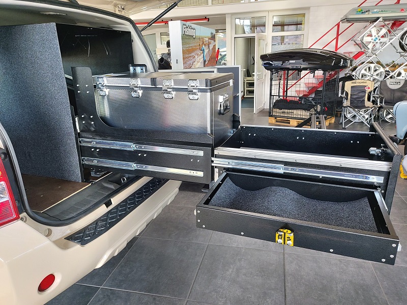 Die Schublade wird herausgezogen und in einem Schritt fährt die Kühlbox nach unten. Dies ermöglicht einen einfachen Zugang zu Ihrer Kühlbox in erreichbarer Höhe. Das extrem Praktische der Miniküche ist, dass Sie die Schublade und den Kühlschrank gleichzeitig benutzen können. Gefertigt aus 2 mm, bzw. 3 mm Aluminium und 3 mm Edelstahl und ist in höchster Qualität pulverbeschichtet.