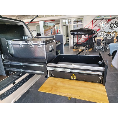 Die „DAKTEC / Quick Pitch Mini Kitchen“ wurde entwickelt, um ein Problem zu lösen, welches fast jeder Camper oder Overlander kennt, die mangelnde Fläche zum Verstauen optimal auszunutzen. Wenn Sie eine Kühlbox in Ihrem Fahrzeug oder Anhänger haben, können Sie nichts auf oder unter dem Kühlschrank verstauen, wodurch wertvoller Platz verschwendet wird. Die Miniküche löst dieses Problem, indem eine Schublade sowie eine Holzarbeitsplatte unter dem Kühlschrank versteckt ist, die große Schublade kann für Besteck oder Becher verwendet werden und die Arbeitsplatte aus Holz zum Schneiden der Zutaten.