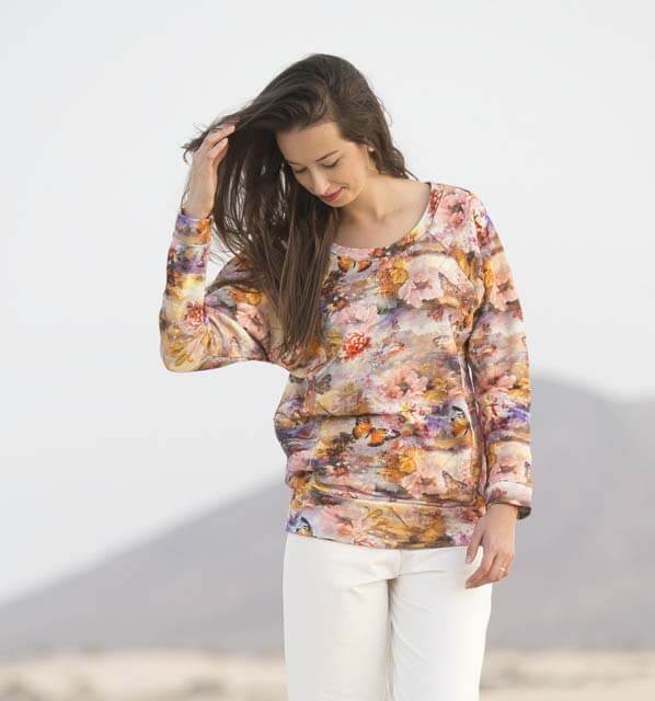 Dieses Shirt kannst Du auf verschiedene Arten nähen, ein Schnitt mit vielen Variationsmöglichkeiten. Im Ebook erklären wir alle Varianten Schritt für Schritt. Ob klassisch oder wie hier dargestellt im “Used Look”, das Modell wirst Du sicher einige Male nähen. Das Shirt ist aber nicht nur optisch ein Highlight, auch das Nähen geht sehr schnell und einfach und ist auch für Nähanfängerinnen gut machbar.