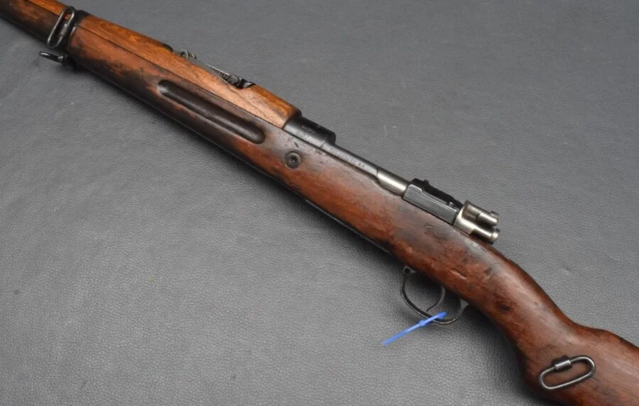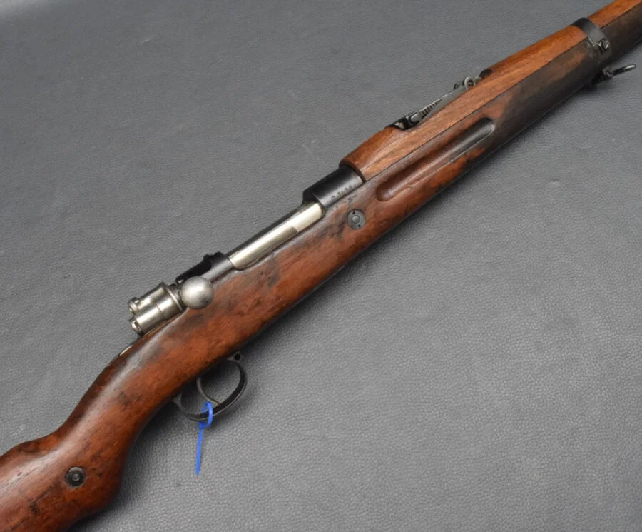 Staatswappen auf dem Hülsenkopf, Bajonetthalter unter dem Lauf.
