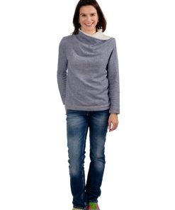 Stoffempfehlung für diesen Style: Elastische Stoffe mit etwas Stand. Sehr weiche Stoffe fallen in sich zusammen und dann “steht der Kragen” nicht mehr. Dickere Sweatshirtstoffe, unsere Scuba double Face Stoffe oder Mischgewebe haben wir verarbeitet.