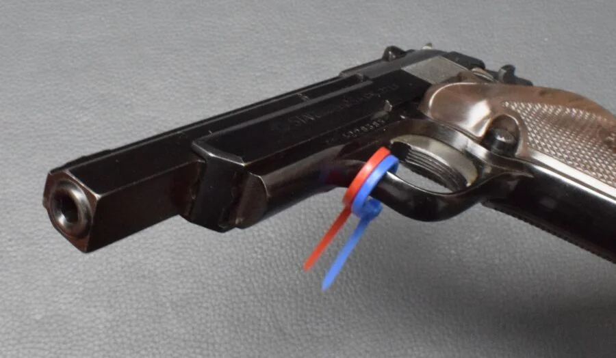 außenliegender Hahn, seitliche Sicherung,
