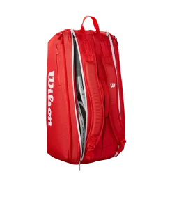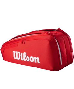 Genießen Sie die tadellose Qualität und den professionellen Nutzen der neuesten Super Tour-Taschenkollektion von Wilson in majestätischem Rot, der ikonischsten Farbe der Marke. Diese Tasche bietet Platz für bis zu neun Schläger sowie Kleidung und Zubehör und verfügt über zwei Hauptfächer, eines davon mit Thermoguard-Futter zum Schutz des Inhalts vor extremen Temperaturen. Zwei große und ein kleines Außenfach bieten praktischen Platz für kleinere Gegenstände wie Geldbörse, Handy oder andere Wertgegenstände. Dank der verstellbaren, gepolsterten Riemen lässt sie sich wie ein Rucksack tragen, und dank des robusten Tragegriffs lässt sie sich auch in der Hand tragen.