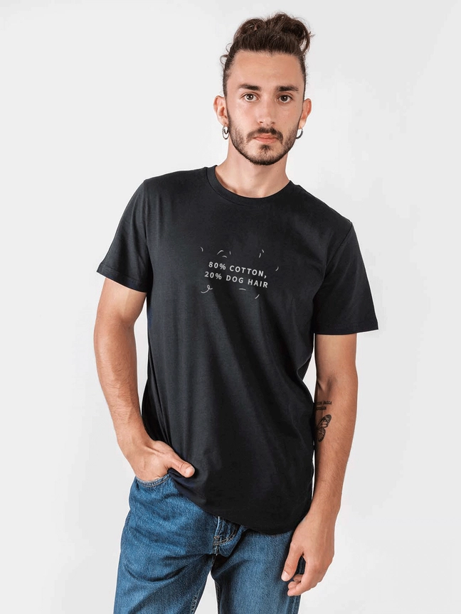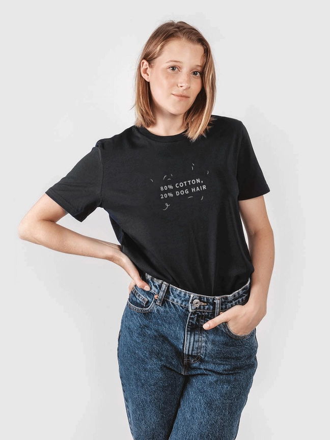 T-Shirt für Hundeliebhaber, Stickerei „80% cotton, 20% dog’s hair“, schwarz, 100% Bio-Baumwolle (XS, M)
