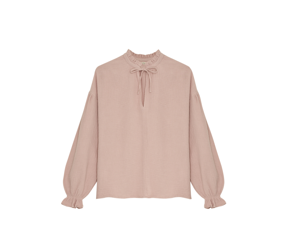 Unsere klassische Bluse Olivia aus weichem und atmungsaktivem Doppelgaze-Stoff ist ein zeitloses Must-have für Ihre Garderobe. Mit Puffärmeln und einem Schlüsselloch-Detail vorne mit zartem Bindeverschluss verleiht sie jedem Look eine charmante Note. Erhältlich in verschiedenen Farben, passend zu jedem Stil und jeder Jahreszeit.
