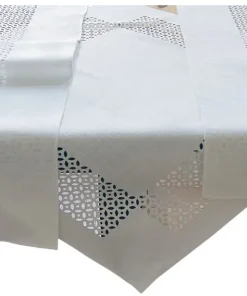 - Tischdecke / Mitteldecke mit Verzierungen & durchbrochenen Elementen als Motiv – wollweiße Tischwäsche / Heimtextilien