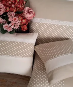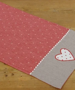 • Mitteldecke / Tischdecke aus Stoffmix in beige / weiß – Bordüren mit Herzchen & Spitze rundum – trendiger Landhaus-Stil – Serie TRAUDL