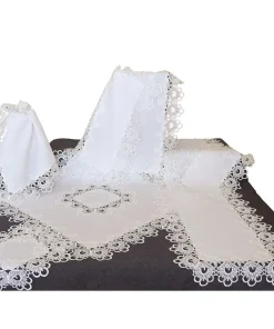 Der Tischläufer INES 35 x 70 cm vereint zeitlose Schönheit mit liebevoller Gestaltung. Die detailreiche Spitzenbordüre mit floralen Mustern rundet das weiße Textil elegant ab und sorgt für nostalgisches Flair auf Kommoden, Beistelltischen oder in der Küche. Ideal geeignet für schmale Tische oder als Akzent über einer größeren Decke. Der feine Stoff aus 100 % Polyester ist nicht nur optisch ein Highlight, sondern auch pflegeleicht: maschinenwaschbar bei 30 °C, formstabil, knitterarm und schnelltrocknend. Die klassische Farbe lässt sich vielseitig kombinieren – ob mit Porzellan, Holz oder dekorativen Accessoires im Landhausstil. INES bringt eine romantische Note in deine Tischdeko und eignet sich perfekt für liebevoll gedeckte Kaffeetafeln, kleine Feiern oder den Alltag. Mit seinem harmonischen Design und der hochwertigen Verarbeitung ist dieser Läufer ein stilvoller Blickfang in jedem Raum und passt zu klassischen wie modernen Einrichtungen.