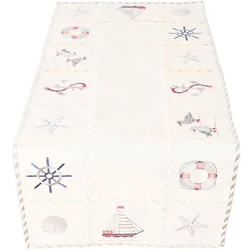 Tischläufer Mitteldecke maritime Motive wollweiß Stick bunt Tischwäsche 40x90cm