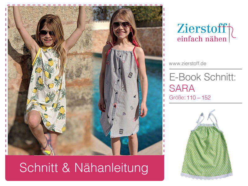 Nähanleitung & Schnitt für das Trägerkleid “SARA”, Gr. 110 – 152: