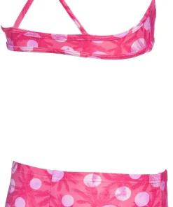 Der stylische arena Mädchen Bikini Tropical Summer mit farbenfrohem Print ist ideal geeignet zum Schwimmen und für andere Aktivitäten am Pool und am Strand. Aus chlor- und salzwasserbeständigem MaxFit Material mit integriertem UV-Schutz UPF50+. Dank dem weichen Material mit Elastananteil lässt er sich leicht anziehen und sorgt für ein angenehmes Tragegefühl. Mit überkreuzten Trägern für sicheren Halt.