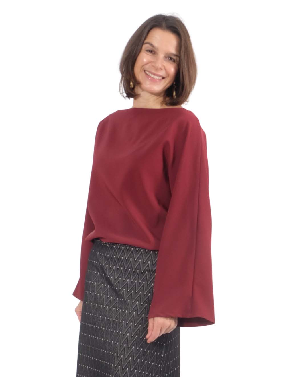 Ein sehr weich fallendes Polyestergewebe, ideal zum Nähen von Shirts, Kleidern, Hosen und vieles mehr. Abbildung Bluse Janka, Augusta und Aurora in diversen Farben. In diesem Facebook Video zeigen wir den Stoff, hier kann man dann auch alle Farben sehr gut erkennen und sehen wie der Stoff fällt.