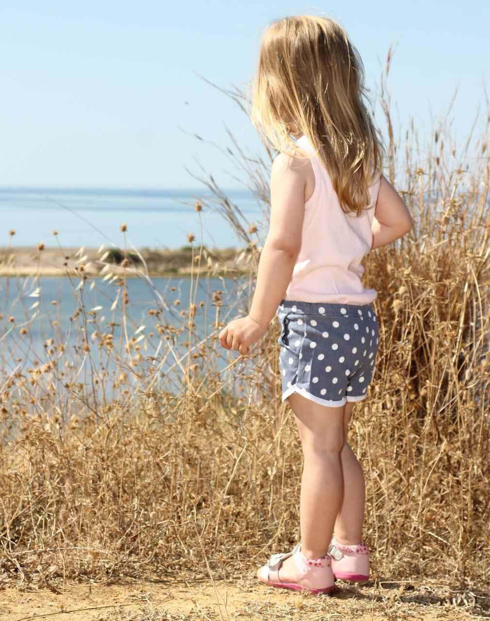 Du bist eine blutige Nähanfängerin und möchtest eine süße Hose für den Sommer zaubern? Mit oder ohne Taschen, aus Jersey oder aus Baumwolle, dieses Modell schaut aus allen Stoffen genäht gut aus. Und wie man anhand der Bilder erkennen kann ist dieses Modell nicht nur für Mädchen geeignet…-) Allerdings sollten die Jungs dann eher schmal oder normal gebaut sein. Wer es lieber etwas weiter, lässiger und länger mag der sollte sich das Modell “Mats” anschauen. Dieses ist das Gegenstück von “Mina” und für Jungs konzipiert.