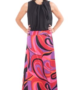 Dieser hochwertige Satinstoff bedruckt eignet sich super für Blusen, Hosen, Kleider und vieles mehr. Abbildung Schnittmuster Kleid Marianne, Rock Wanja und Yara aus gleicher Qualität aber anderer Musterung, ebenfalls Hose Fatima.