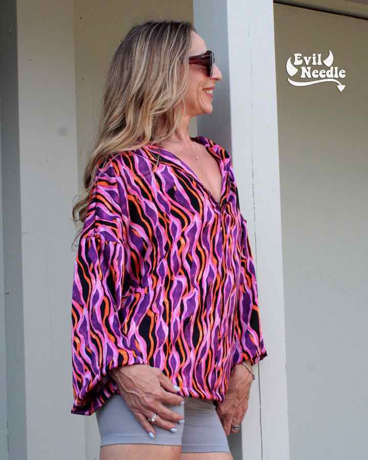 Dieser hochwertige Satinstoff bedruckt eignet sich super für Blusen, Hosen, Kleider und vieles mehr. Abbildung Schnittmuster Kleid Marianne und Bluse Nilam in Original. Abbildung Rock Wanja, Yara aus gleicher Qualität aber anderer Musterung, ebenfalls Hose Fatima.