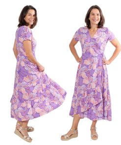 Dieser Viskose Stoff ist leicht fallend und hat eine tolle Haptik, Abbildung Schnittmuster Bluse Dora und Wickelkleid Safia in anderer Musterung zur Inspiration.