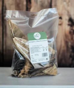 Die 300g Tüte enthält unsere Kälberblasen, Rindersticks, Rinderlunge, gedrehte Kälberblasen und Kaninchenohren.