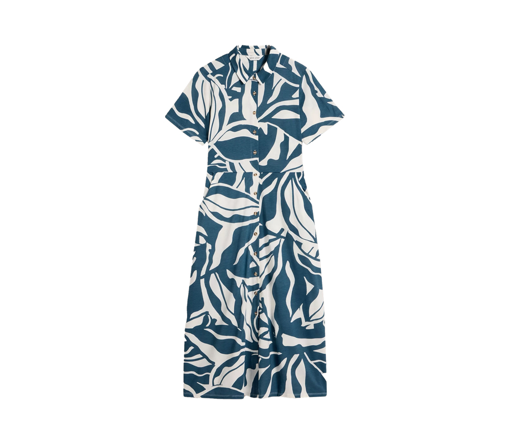 Weicher Jersey mit Bio-Baumwolle, Taschen und eine schicke Knopfleiste. Du wirst dich Hals über K(n)opf in dieses schön gemusterte Hemdblusenkleid verlieben.
