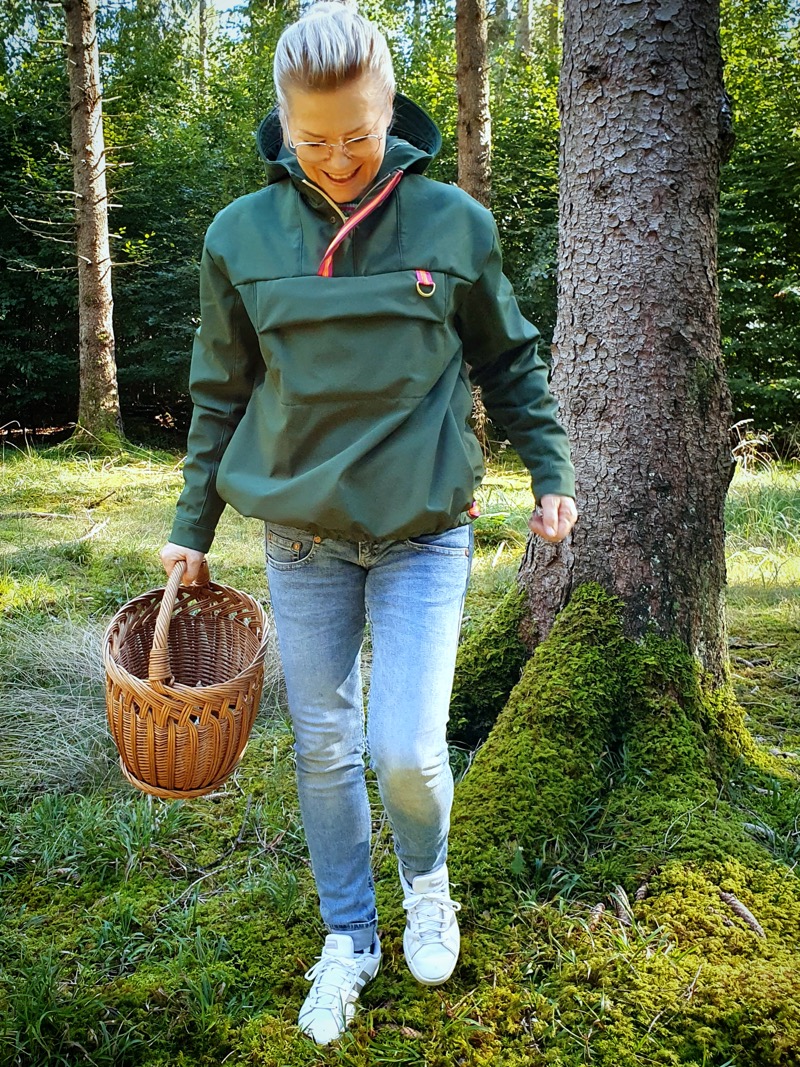 Das Schnittmuster ist eher weiter geschnitten und somit für leicht fallende Stoffe konzipiert. Bei dickeren Stoffen kannst Du den Windbreaker evtl. eine Nummer kleiner nähen, das ist wie so oft eine Geschmacksfrage.